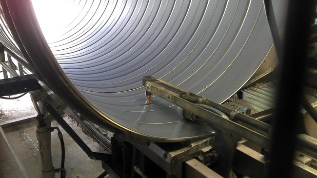 MACHINE DE DECOUPAGE PLASMA Machine de débit et de découpe d’ouverture dans les tubes cylindriques Positionneur élevable sur chemin de roulement Ø maxi : 650 mm Longueur de poutre 14 m, pour 12 m utile Glissière verticale d’ajustement : 600 mm