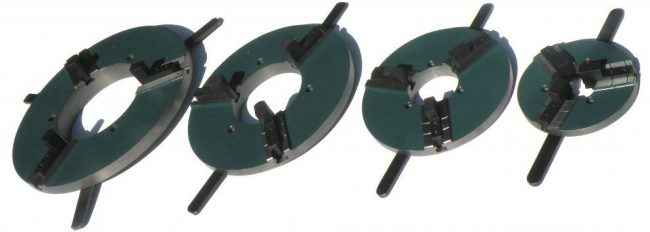 6 modèles GRIP 200 / 300 / 400 / 500 / 600 /750 Trou passant Ø selon modèle (de 80 mm pour le plus petit à 515 mm pour le plus grand) Mandrin à faible épaisseur et faible poids Serrage sans clé Serrage par levier