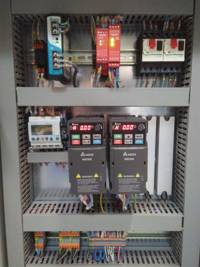 Rééquipement complet de potence avec des composants modernes montés selon les règles CE.: Armoire électrique avec relais de sécurité, variateur avec fonction STO, automate programmable pour avoir des temporisations des mouvements afin de réaliser des décalages de passes en multi-passes. Changement du câblage et des moto réducteurs (bras et base) Rétrofit Electrique d’une potence de…