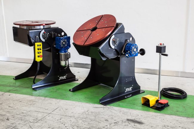 Positionneur THREE Capacité 300 Kg Ø du plateau 500 avec trou passant Ø 105 mm Positionneur FIVE Capacité 500 kg Ø du plateau 650 avec trou passant Ø 102 mm Ces positionneurs se déclinent en 5 modèles BASE : – Rotation motorisée – Inclinaison manuelle par volant de manœuvre BR : – Rotation motorisée par…