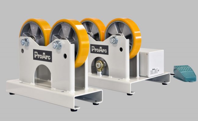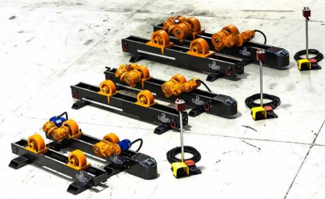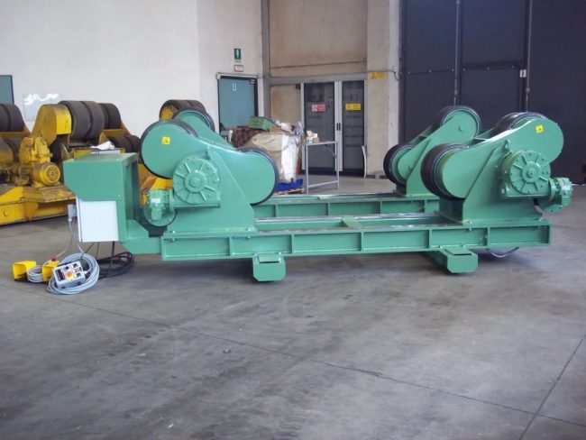 Capacité 1.000 Kg (sur deux traverses) Ø mini/maxi 20 à 800 mm Vitesse 80 à 1.600 mm/min Dimensions des galets Ø 200 mm x 50 (2 par traverse) Composition 1 traverse motrice avec coffret de contrôle détachable 1 traverse folle 1 pédale de commande Poids total 54 Kg